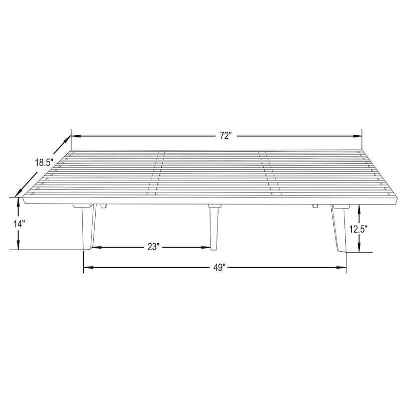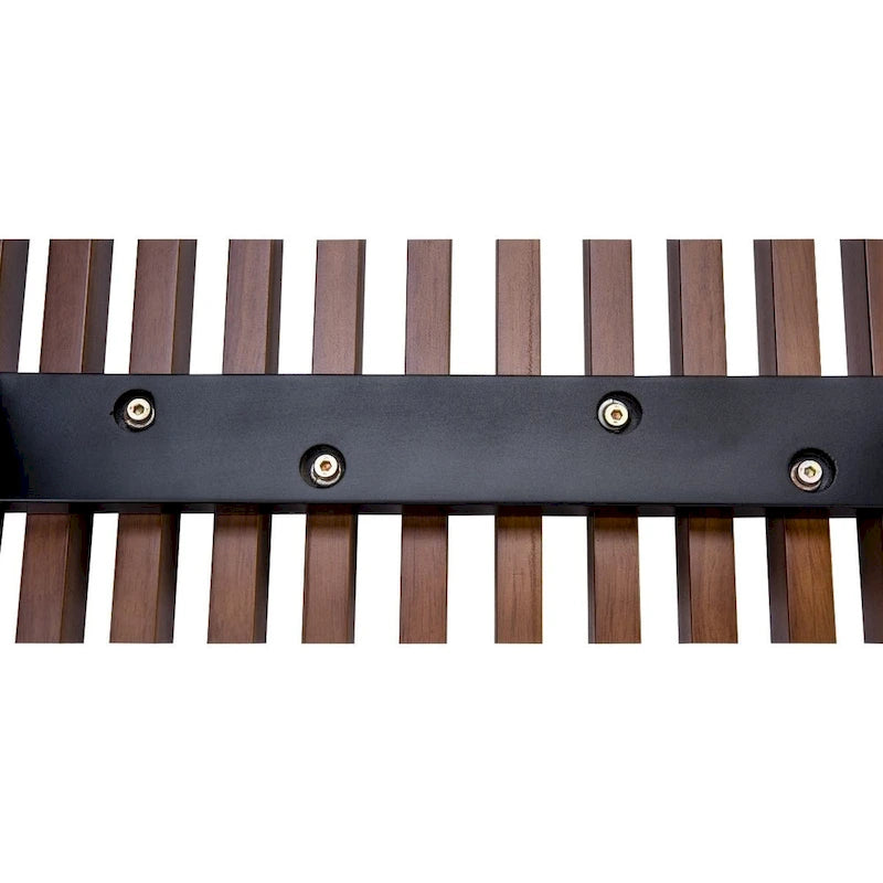 Conception à lattes : Le plateau de la banquette est composé de lattes de bois régulièrement espacées. Ce design crée un motif quadrillé esthétique tout en favorisant la circulation de l’air. L’espace sous le plateau reste ouvert, sans rangement fermé, offrant ainsi la possibilité de glisser des objets sous la banquette.