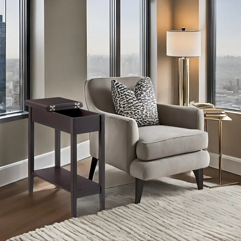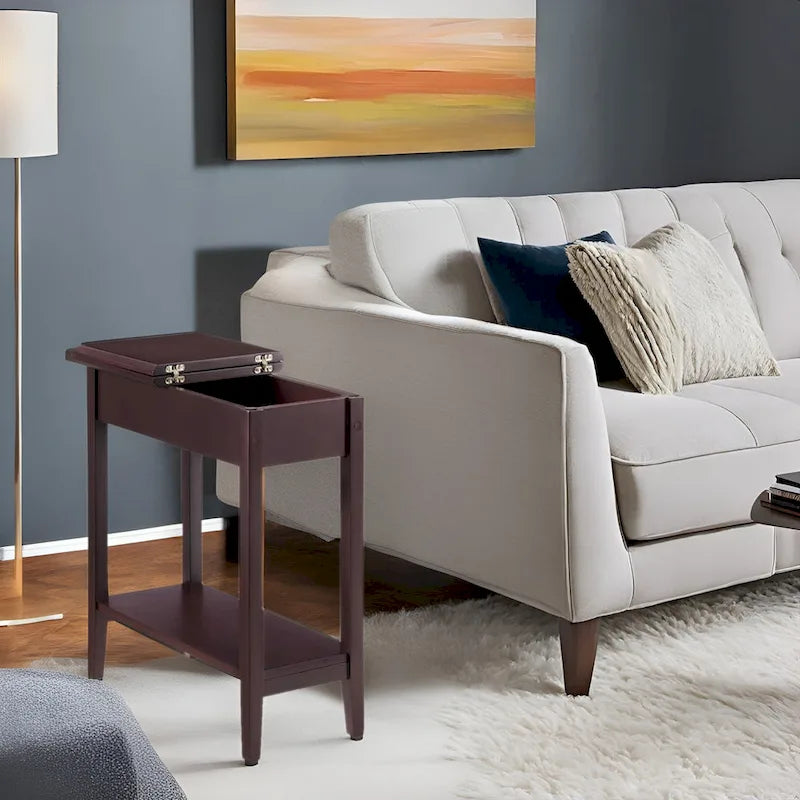 La table d'appoint étroite en bois avec plateau rabattable et rangement est un ajout élégant et pratique à tout espace de vie. Son design fin est idéal pour les petits espaces, tandis que son plateau rabattable offre un accès pratique à un espace de rangement dissimulé. Ce meuble polyvalent allie fonctionnalité et style, ce qui le rend idéal pour les intérieurs contemporains et traditionnels. Cette table d'appoint étroite en bois avec plateau rabattable et rangement est un mélange de praticité et d'élégance, un élément essentiel de votre collection de meubles. Caractéristiques :