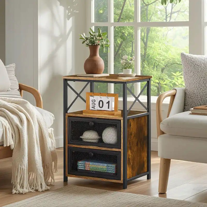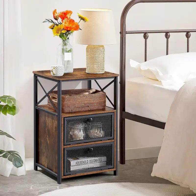 - Table de chevet robuste et stable – Fabriquée en MDF de haute qualité, résistant aux hautes températures et à l'eau. Sa structure métallique noire en X assure stabilité et durabilité. Nettoyage facile avec un chiffon humide.