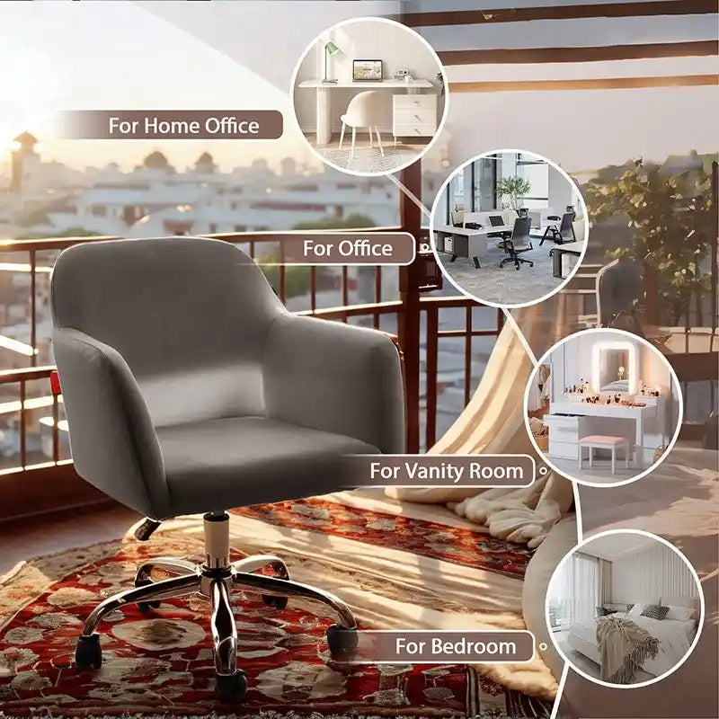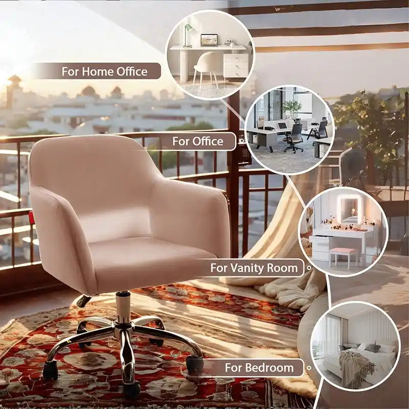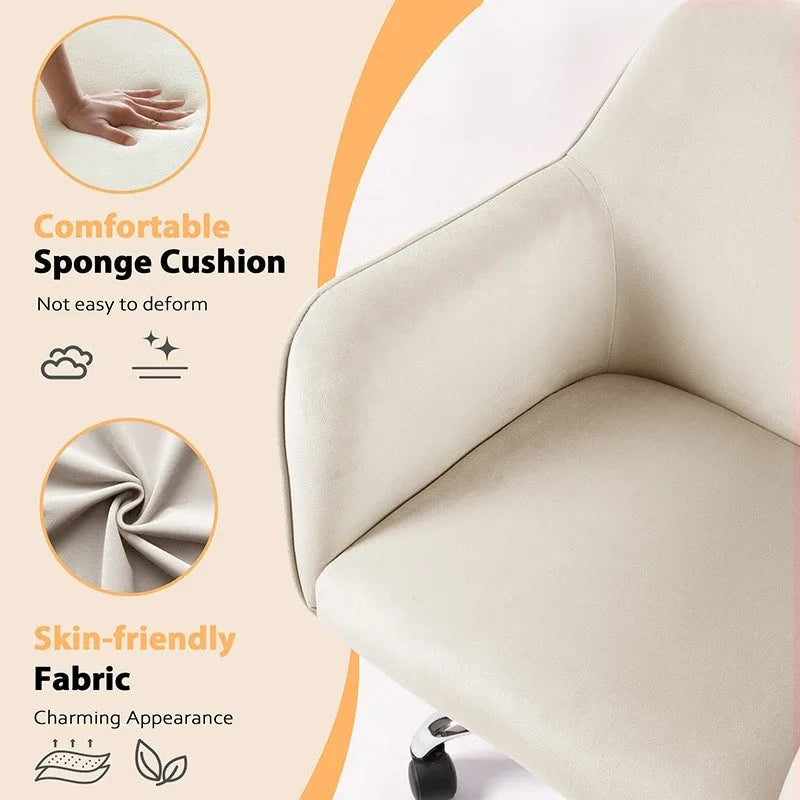 Fauteuil pivotant VANITII, chaise de coiffeuse avec roulettes, style moderne, hauteur réglable, rose/gris/blanc