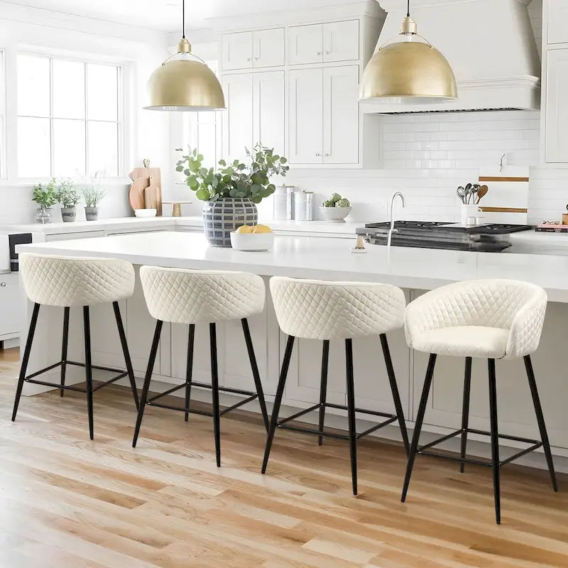 Design élégant et moderne. Avec une hauteur d'assise de 66 cm , ces tabourets de bar en velours conviennent aux comptoirs de 91 à 102 cm de hauteur. Les lignes épurées des pieds en métal et le revêtement lumineux apportent une touche contemporaine, les rendant parfaits pour divers aménagements intérieurs tels qu'un îlot de cuisine, une table de bar ou un espace détente.