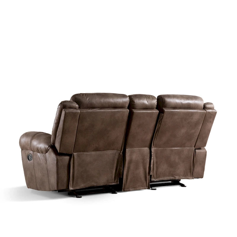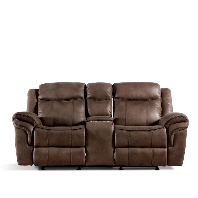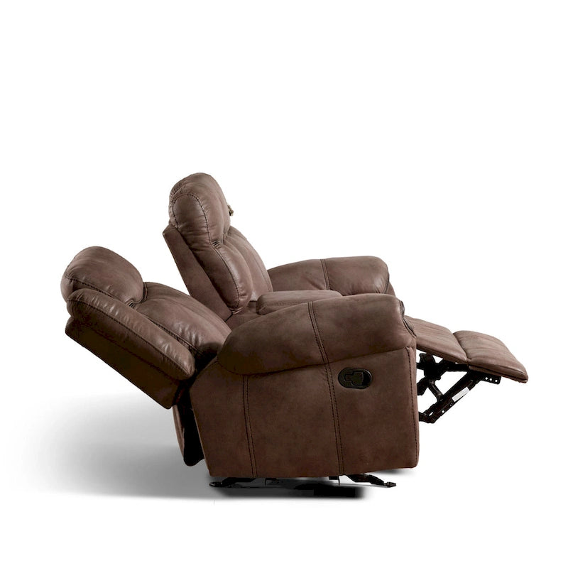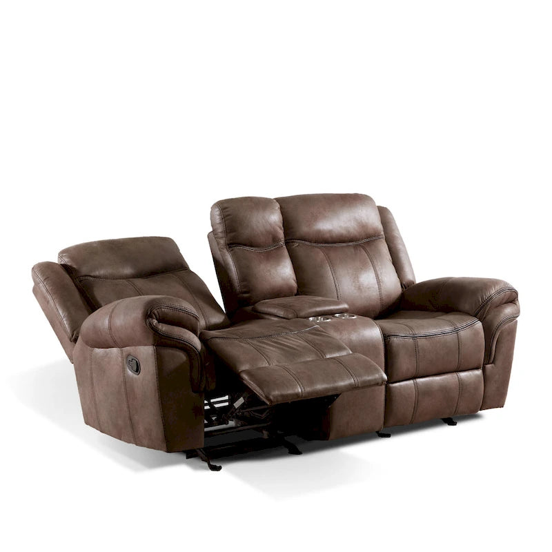Canapé inclinable deux places Verne Brown en microfibre suédée avec console de rangement centrale