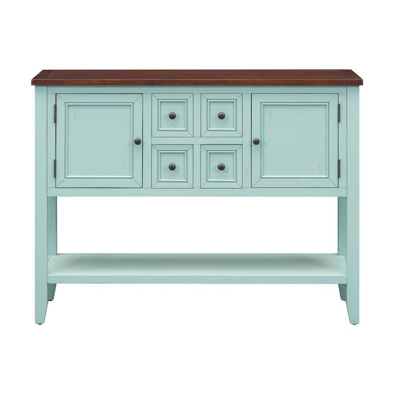 Buffet console vintage bleu avec étagère inférieure