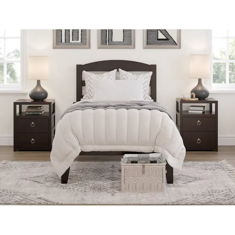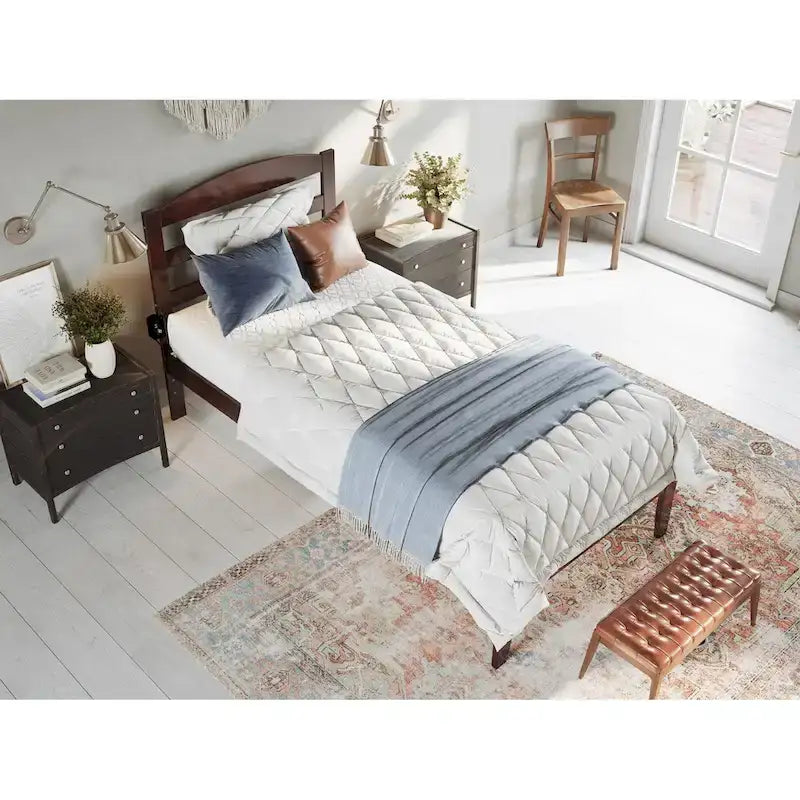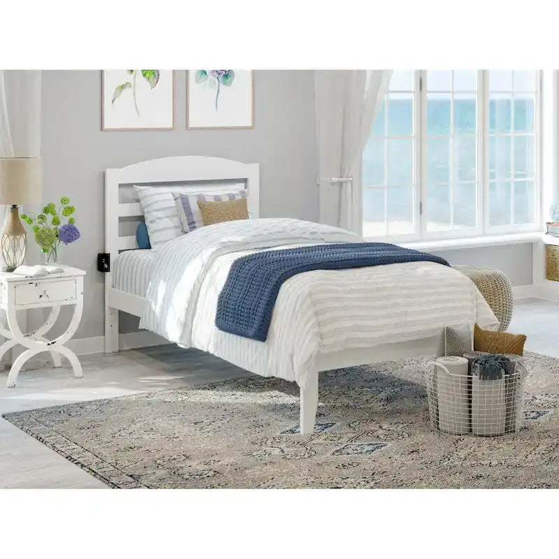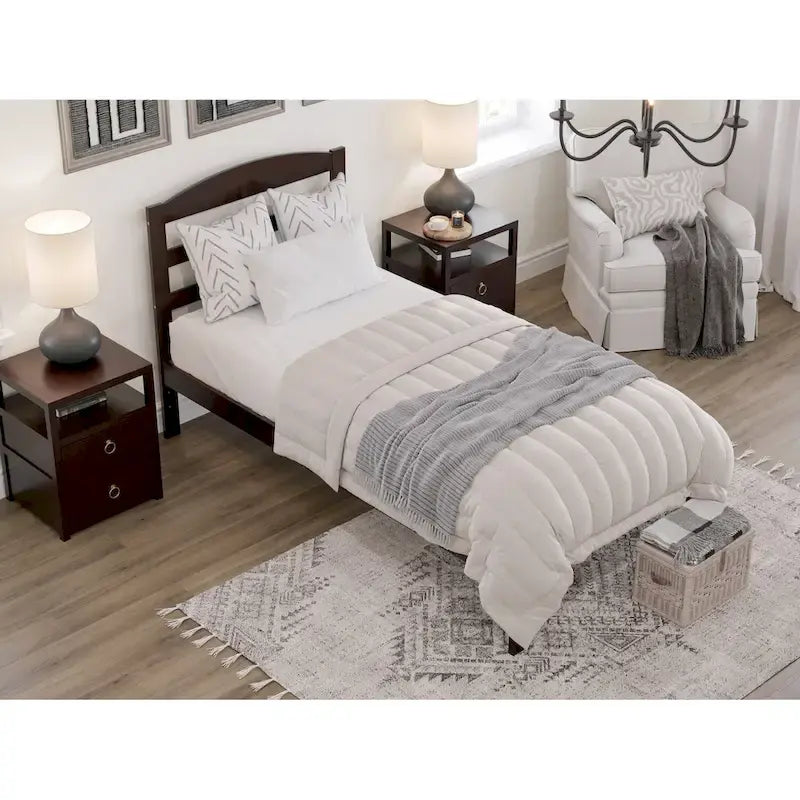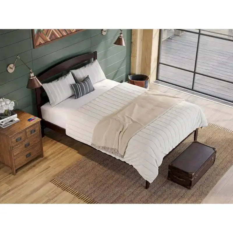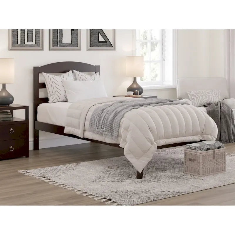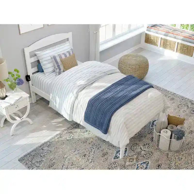 - Tête de lit et cadre de lit à lattes horizontales arquées : Fabriqués en bois massif avec une finition non toxique pour une durabilité accrue