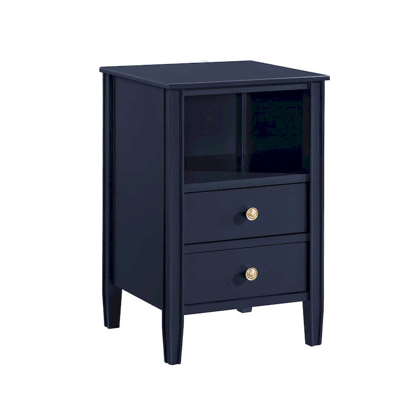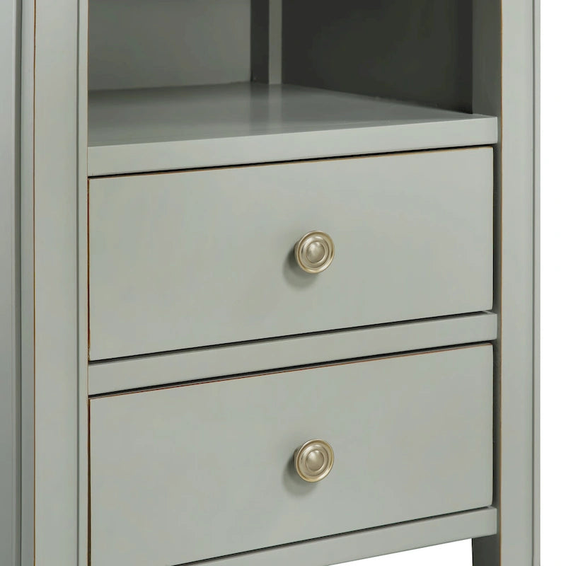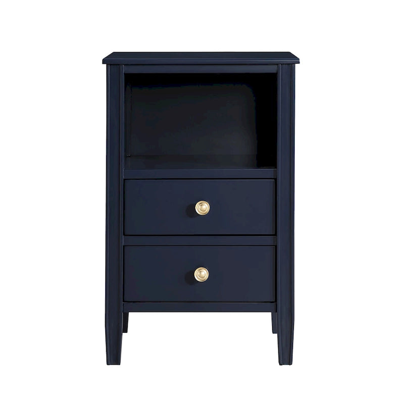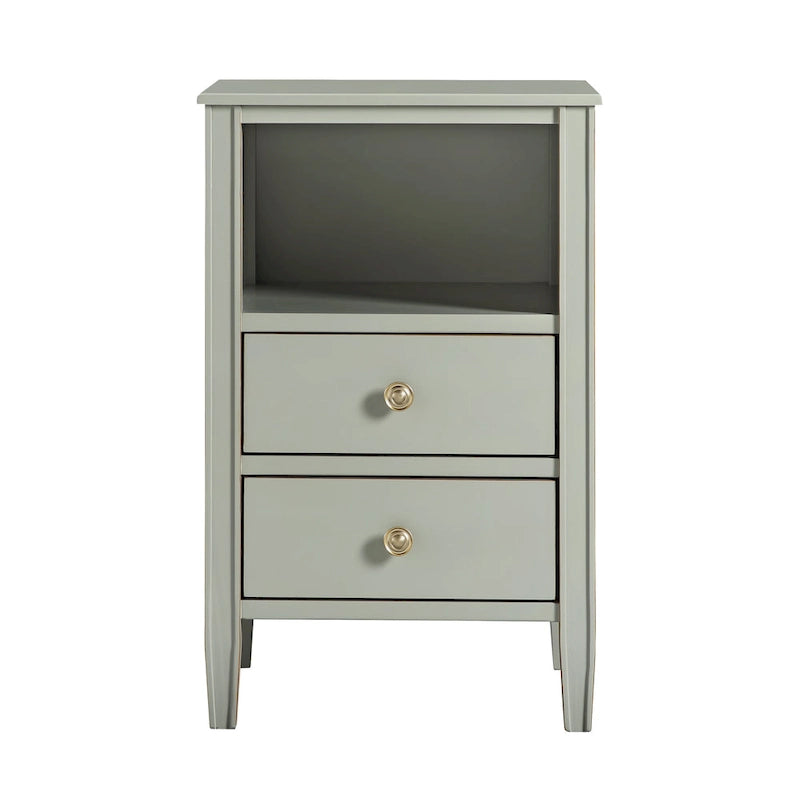 Sublimez votre chambre avec la table de chevet Wendel, qui allie à la perfection élégance et fonctionnalité. Disponible dans une variété de finitions, dont le bleu nuit légèrement vieilli, le vert vintage, le blanc antique et le gris antique, chaque couleur apporte un charme unique à votre espace. Ses deux tiroirs, assemblés à queue d'aronde, sont robustes et dotés de glissières métalliques latérales pour une ouverture et une fermeture fluides. Profitez de la polyvalence de l'étagère ouverte, offrant un espace généreux pour ranger vos objets de décoration préférés ou les exposer. Rehaussée de pieds cannelés et fuselés, cette table de chevet dégage une sophistication et un charme intemporels. Mieux encore, aucun montage n'est requis ! Déballez simplement votre table de chevet Wendel et profitez instantanément d'un style et d'une praticité exceptionnels. Améliorez votre chambre sans effort avec la table de chevet Wendel à 2 tiroirs : beauté, fonctionnalité et facilité d'utilisation se conjuguent harmonieusement.