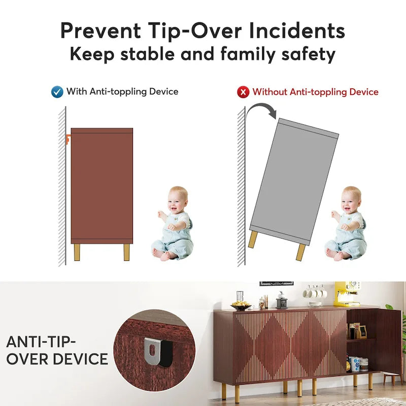 Plus stable grâce à son dispositif anti-basculement : Doté de cinq pieds métalliques robustes, ce buffet supporte jusqu’à 90 kg en toute sécurité. Il est également équipé d’un dispositif anti-basculement, garantissant ainsi la sécurité des enfants.